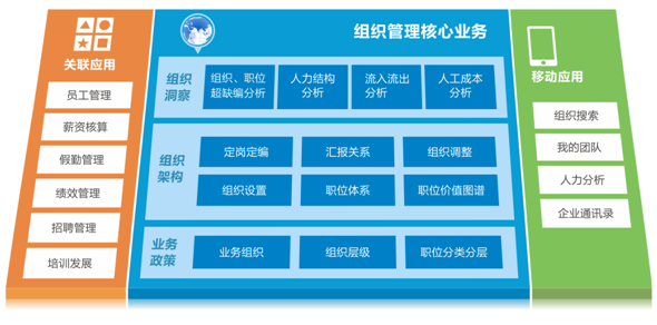 通過組織架構搭建,形成以職位體系為基礎的企業(yè)人力資源管理架構,同時為企業(yè)的員工管理、假勤管理、薪酬核算及管控、績效管理、培訓管理、招聘管理等人力資源業(yè)務的應用提供基礎數據。